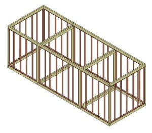 De opbouw van een unit bestaat uit een (of meerdere) houten frame(s) van balken en kolommen.