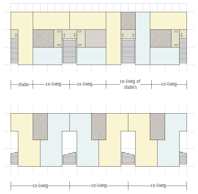 Schemas van co-living met appartementen